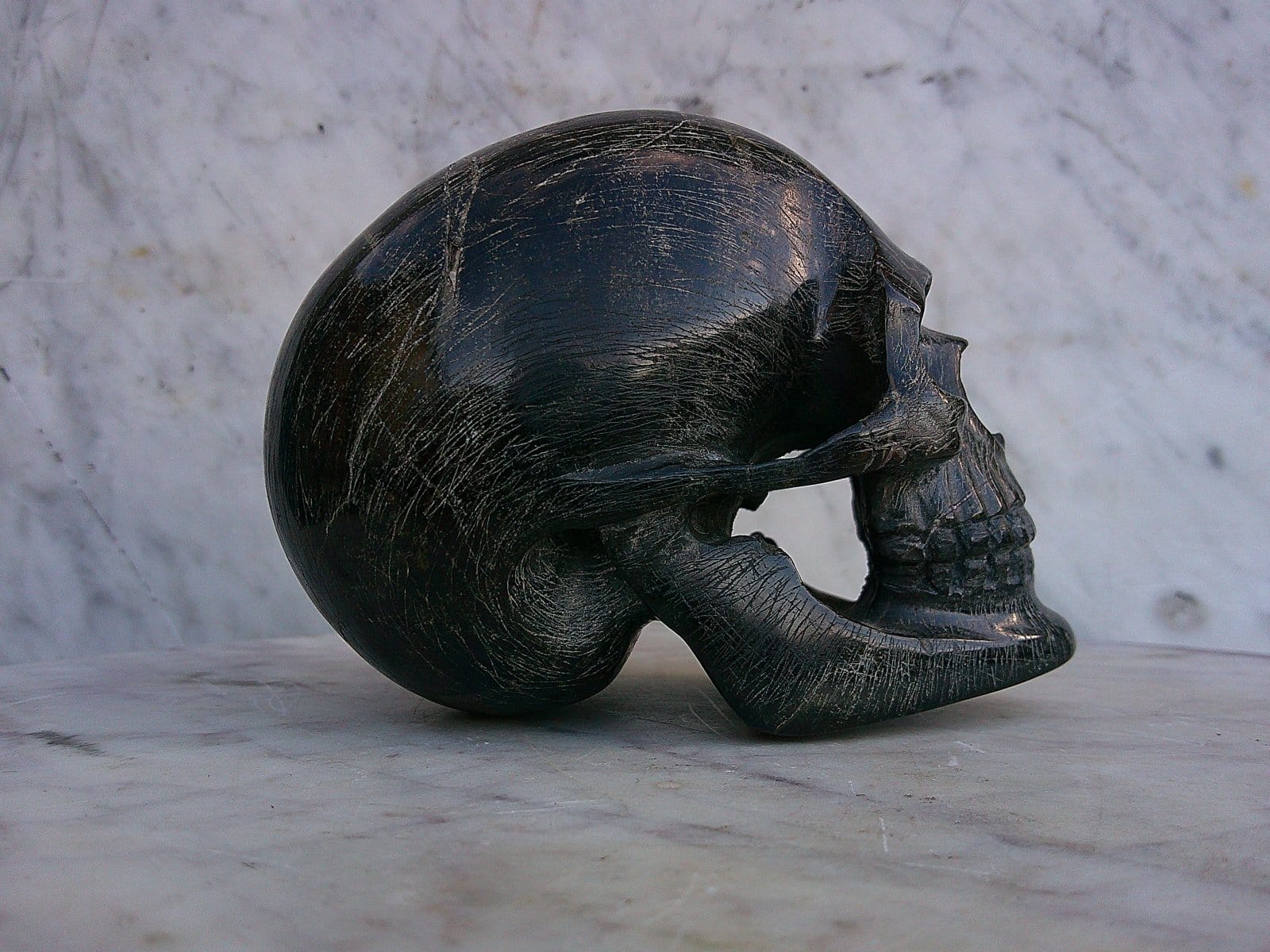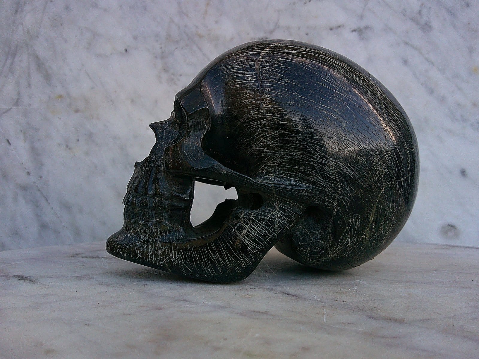 Crâne dans un bloc de serpentine | Pièce unique sculptée en Aveyron (FRANCE)